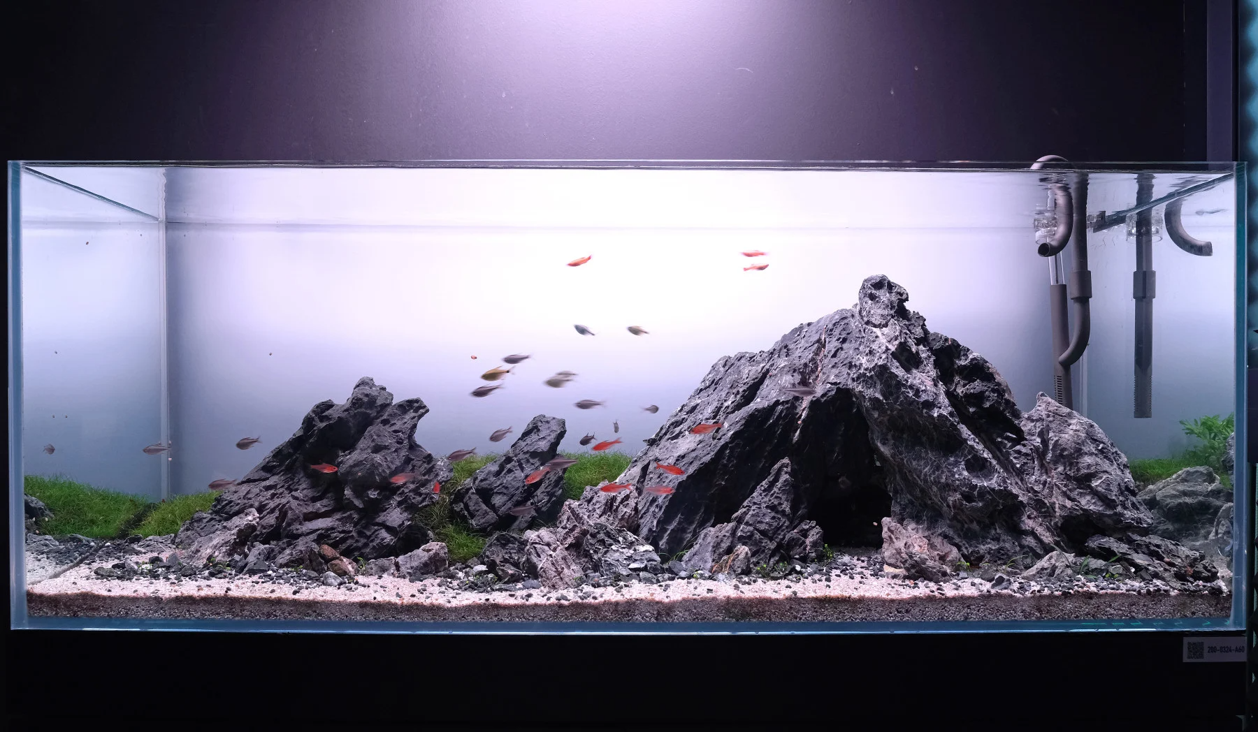 Nous utilisons l’APT 1 dans l'Iwagumi ci-dessus. Les plantes couvre-sol obtiennent tout leur azote et leur phosphore du sol aquatique. La réduction des nitrates et des phosphates dans l'eau empêche la formation d'algues à la surface des roches blanches.